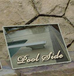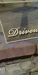 Flagstone front porch with cobblestone stamped sidewalks.